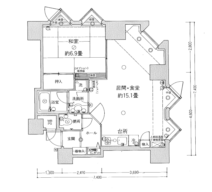 - オプションの収納ベッドが無いタイプのお部屋です。